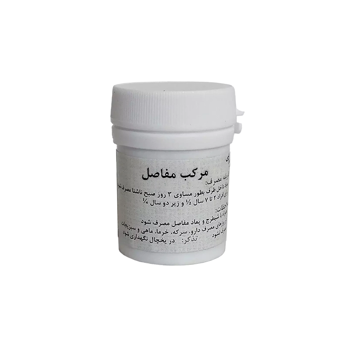 طریقه مصرف: مواد داخل ظرف بطور مساوی 3 روز صبح ناشتا مصرف شود برای افراد 2 تا 7 سال نصف و زیر دو سال یک چهارم ملاحظات: همراه با شیطرج و پماد مفاصل مصرف شود در روزهای مصرف دارو سرکه، خرما، ماهی و سبزیجاتمصرف نشود تذکر: در یخچال نگهداری شود